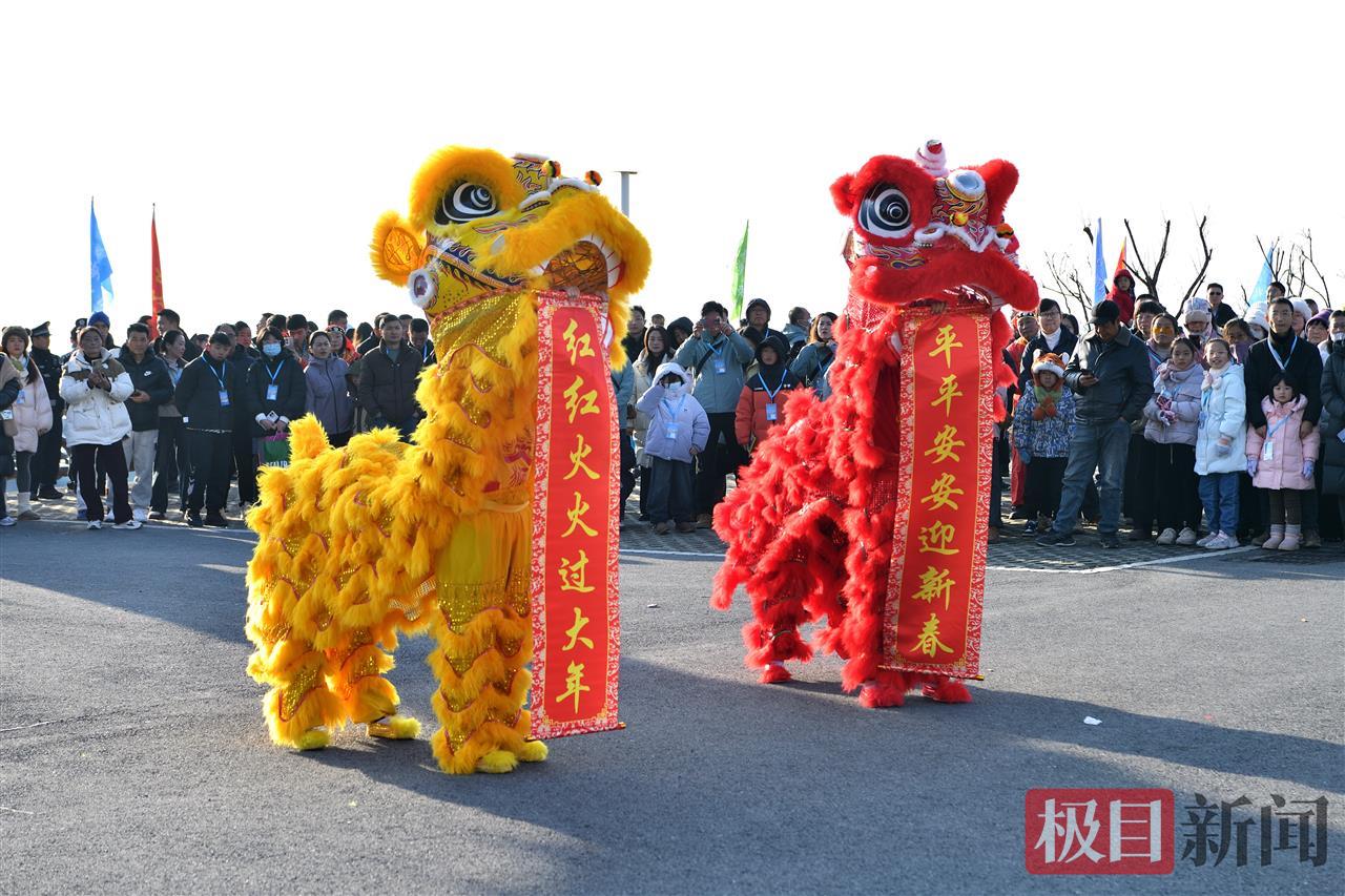 锣鼓声从民俗展演区阵阵传来。金色长龙在雪地翻腾起舞,红绸狮子腾挪跳跃,旱船摇曳如流动彩云,浓郁年味穿透凛冽空气,与冰雪激情碰撞交融。