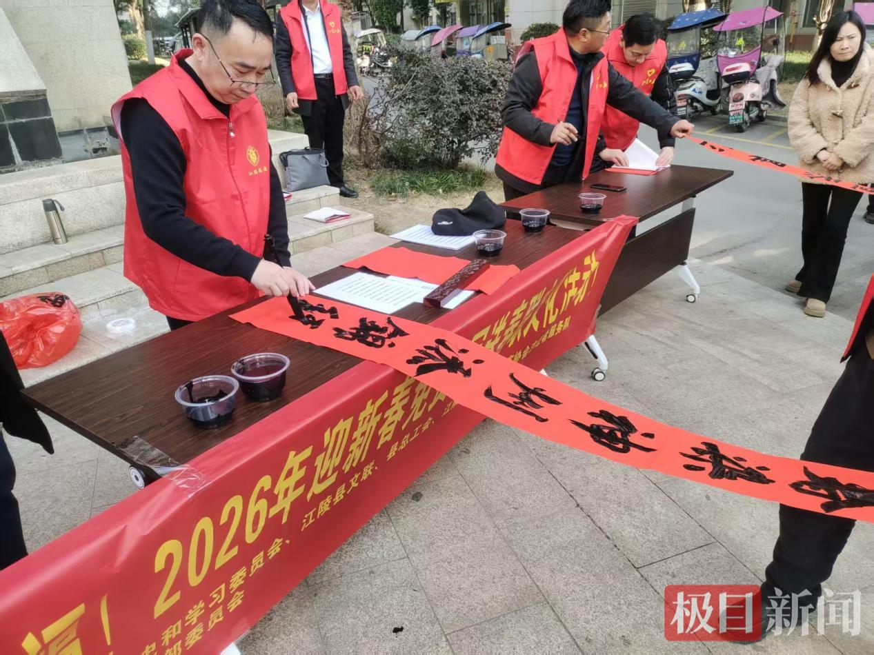 活动紧扣为民理念,充分发动群众力量参与创文建设。书法协会志愿者挥毫泼墨,将“建文明社区・过祥和新年”等文明主题融入春联和福字,居民们排队领取、互相品鉴,在传统文化浸润中凝聚共建共识。老党员李师傅的感慨道出群众心声:“手写的春联有年味,暖心的祝福有分量,文明实践活动真是办到了我们心坎里!”