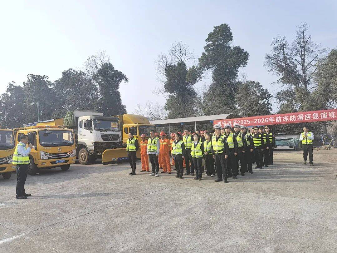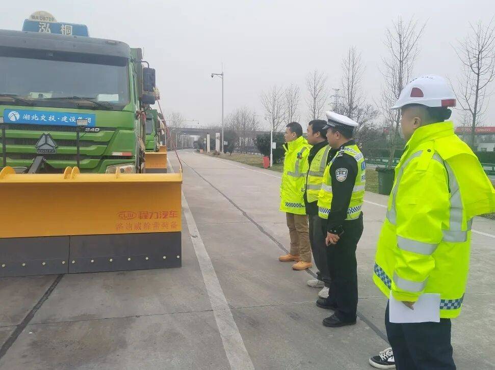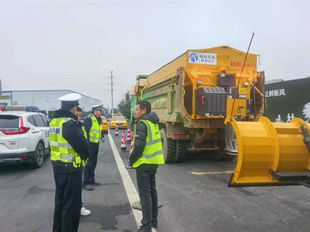 ▲鄂州交警联合路政、巡检办、养护、救援等相关部门组织开展防滑防冻应急演练。