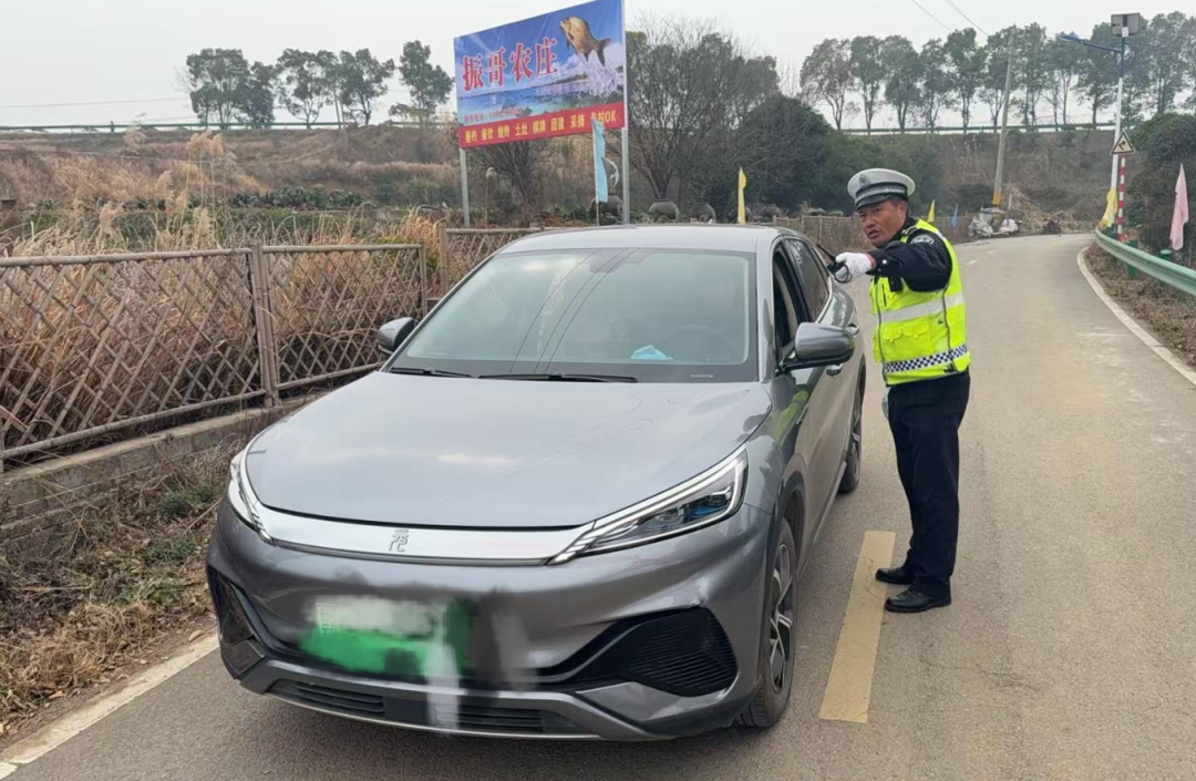 ▲襄阳交警走进高速沿线村庄,入村入户开展恶劣天气安全出行提醒。