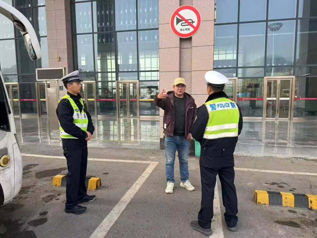 ▲黄石交警走访辖区内国栋运输公司、黄石客运枢纽站,向工作人员强调车辆行驶安全。