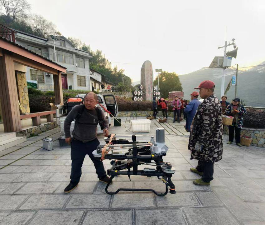 离开钟家国的柑橘园,我们来到了昭君镇金乐村。在这里,另一番科技助农的精彩画面正在上演。只见郑师傅正熟练地操控着无人机,为柑农吊装柑橘。无人机在空中灵活地盘旋、升降,精准地将一筐筐柑橘从田间运送到指定地点,整个过程一气呵成,引得周围的柑农们纷纷驻足观看,啧啧称赞。