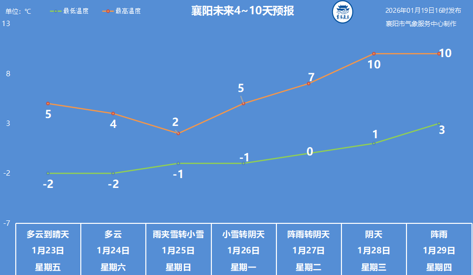 预计未来一周,襄阳有两次低温雨雪冰冻天气过程,分别在19日至21日、24日晚至26日。其中,19日午后至夜间,已开启本轮雨雪最强时段,全市大到暴雪;20日转为小雪天气;21日到22日以阴天为主,西部山区有零星小雪,低温持续、偏北风力较大;23日早晨最低气温将降至-6至-4℃;24日晚至26日,还有一次小到中雪天气过程。