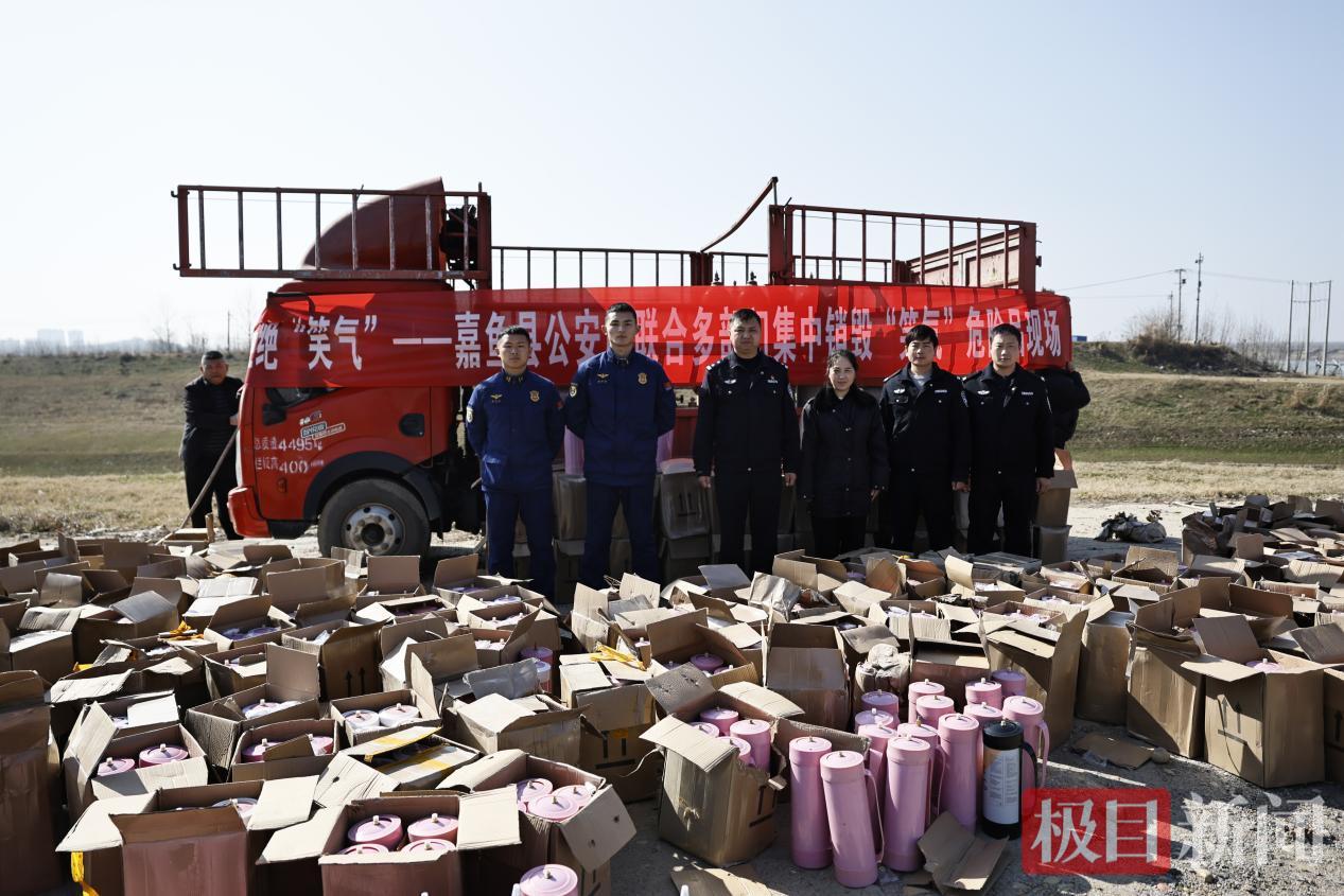 近日,嘉鱼县公安局禁毒大队牵头统筹,联合市场监管、应急管理等部门,开展“笑气”集中销毁行动,以精准整治举措清除公共安全隐患,彰显公安机关守护社会平安的坚定决心。