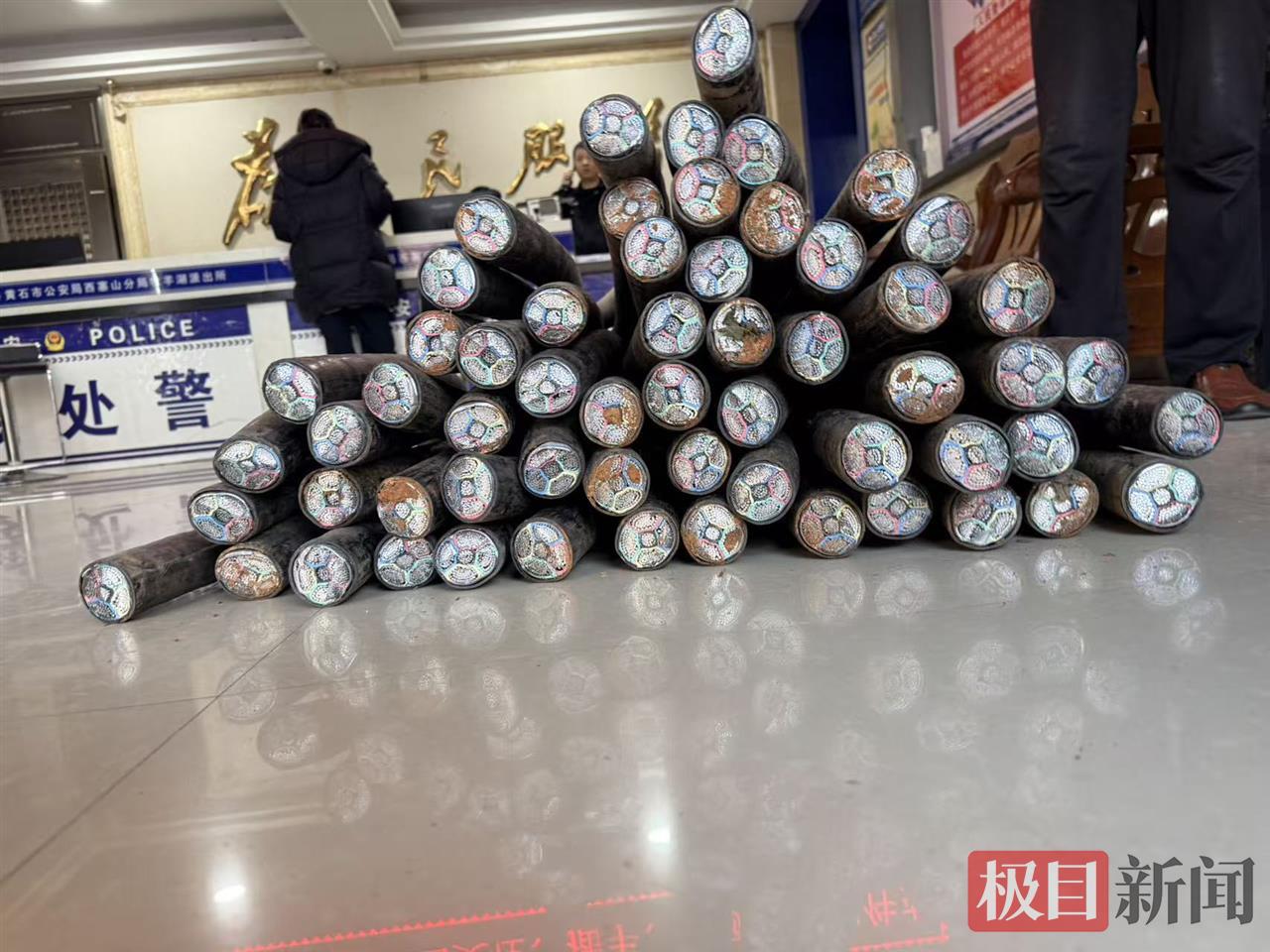 1月8日上午10时许,黄石市公安局西塞山区分局牧羊湖派出所接到辖区某工地安保人员报警,称其工地内数十米的电缆线被盗,价值数千元,现场有明显剪切痕迹。