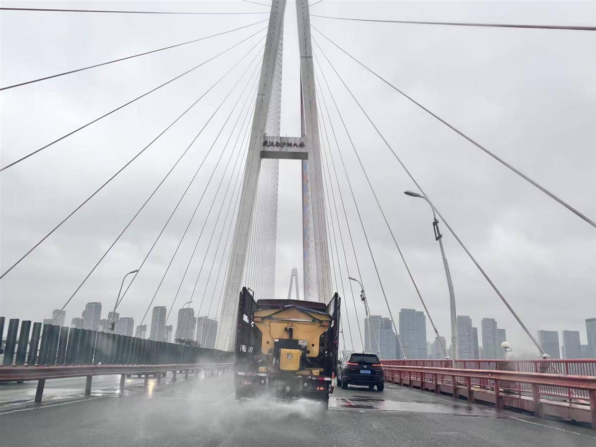 据了解,桥梁上下空气对流快,加上江面开阔、风力较大,更容易在雨雪天气结冰。通过提前干预,既能保障道路安全,也能提高应急管理效率,是冬季道路交通维护的重要措施之一。