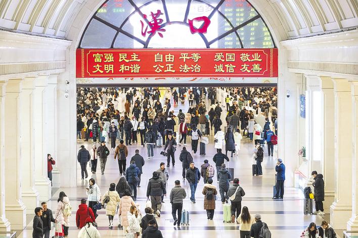1月19日,汉口火车站内旅客出行平稳有序。(湖北日报全媒记者 任勇 通讯员 宋萍 摄)