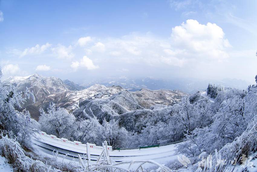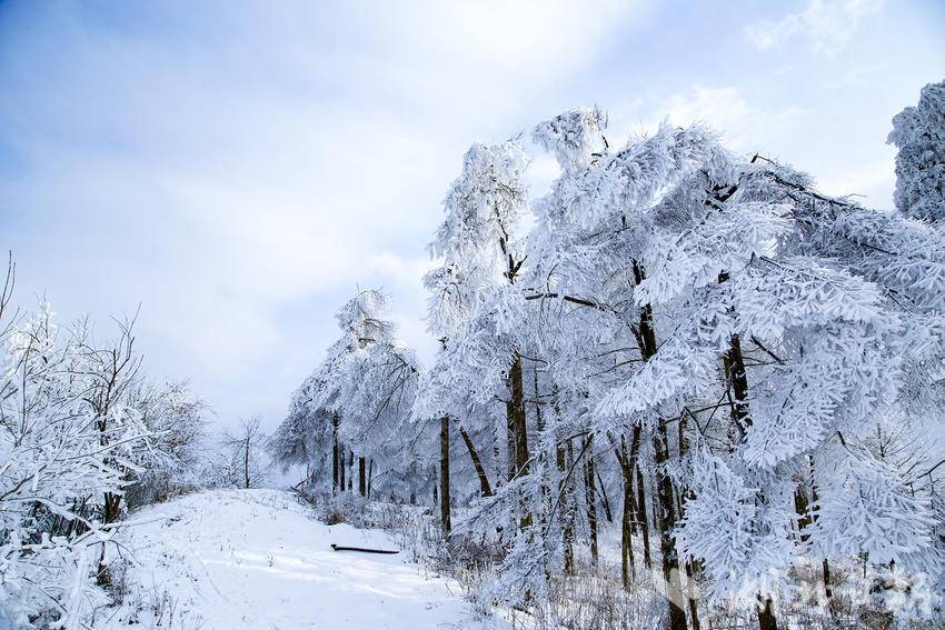 群山裹银装,千树挂琼枝,雾凇冰挂凝霜成画,盘山雪道蜿蜒入云海,蓬松白雪覆满山野松柏,暖阳下碎光粼粼,随手一拍都是壁纸级大片。