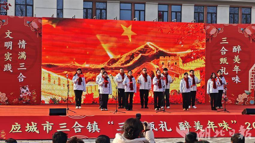 活动在激昂澎湃的集体合唱中落下帷幕,台上,青年干部精神抖擞,齐声高唱《我和我的祖国》;台下,观众挥动手中的国旗与祝福彩带,深情应和。嘹亮的歌声,在三合广场上空回荡,为这场充满温情与活力的新春聚会画上了圆满而充满力量的句号。