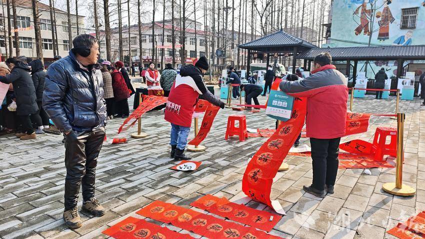 现场活动内容丰富、形式多样。政策咨询与志愿服务展台前,工作人员耐心解答群众疑问;书法爱好者挥毫泼墨,免费书写春联传递祝福;特色农产品展销区聚集了本地优质农产品,吸引众多市民品尝选购。
