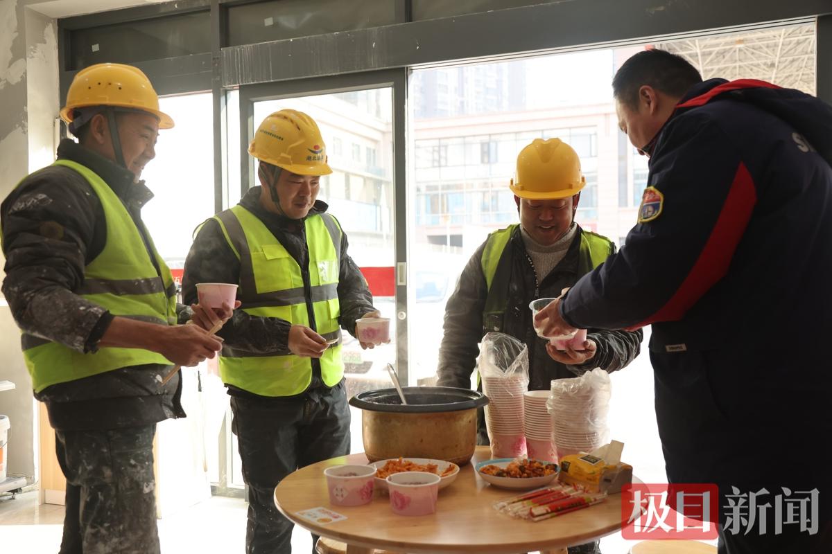 上午8点多,三名施工工人走进站内借用洗手间。“师傅们吃早饭了吗?今天我们免费送腊八粥。”黄克毅热情地招呼道。得知可以享用免费腊八粥,工人们每人盛了一碗。工长李师傅说,他们都是宜昌人,今天在附近小区维修外墙,为了省钱通常不在外吃饭,中午常常饿着肚子干活。听到这里,黄克毅又给每人添了一碗:“多吃点,干活才有力气!”