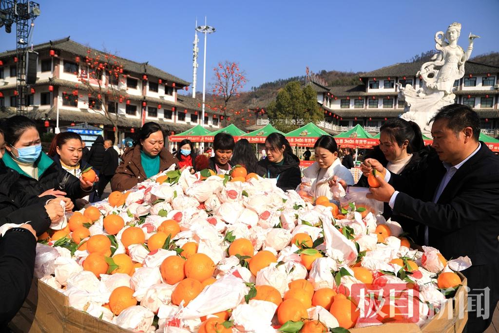 “新鲜沙糖桔,先尝后买,快来尝尝咯!”1月23日下午,竹山县女娲广场上人声鼎沸、年味弥漫,“万货潮集”年货大集一开市就迎来火爆人气。寿康永乐摊位前围得水泄不通,工作人员边吆喝边忙不迭地收银,一筐筐金黄饱满的沙糖桔转眼就见了底。
