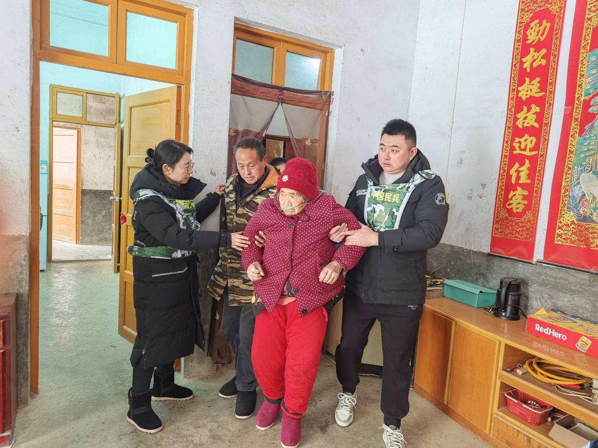 指挥中心调度距离最近的镇村干部、民兵组成应急救援小分队,迅速抵达老人家中,为老人测量血压、实施吸氧。