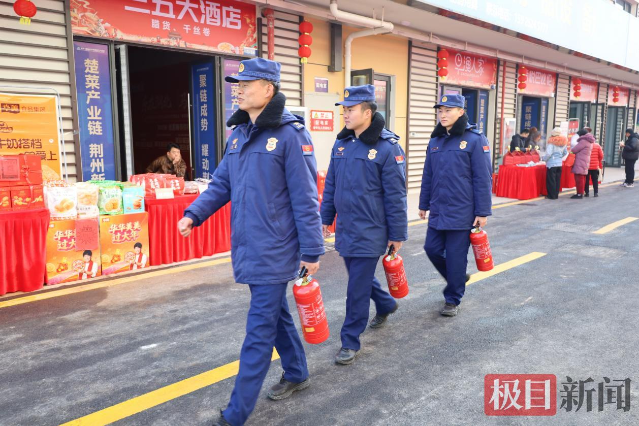 在做好消防安全宣传的同时,荆州区消防救援大队紧盯年货节人员密集、摊位集中的特点,全力做好现场消防安保工作。