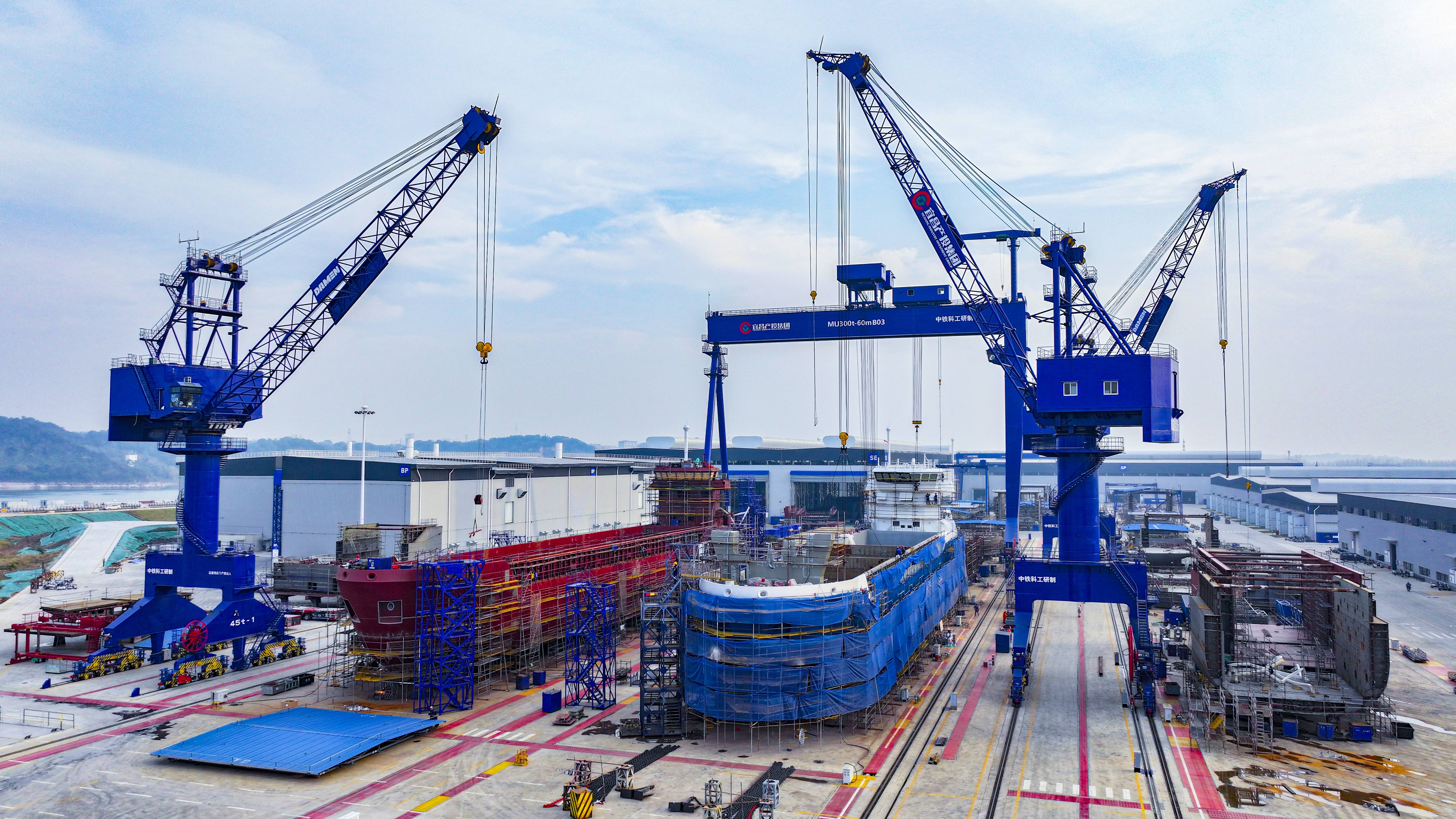 宜昌产投(宜都)绿色智能船舶产业园内达门船舶总装线。(湖北日报通讯员 刘传东 摄)