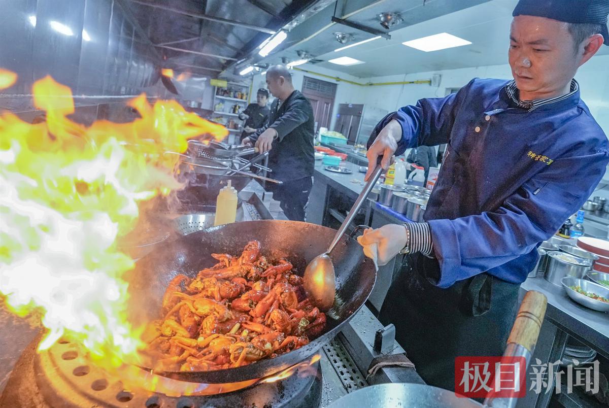 小龙虾端上武汉市民冬季的餐桌,该图片由新闻记者李辉摄