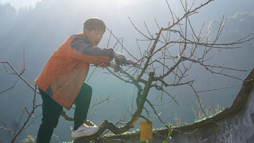 连日来,鹤峰县各产桃乡镇的果园里一派繁忙景象。在太平镇芦坪村的乌桃种植基地,果农们手持专业工具,穿梭林间,按照技术标准对桃树进行科学整形与枝条修剪。“冬天修剪最关键的就是把生病的、太密的、还有向内生长的枝条剪掉,让树形通风透光。这样明年结的桃子个头大、颜色好、病虫害也少。”村民方毅边忙活边介绍。