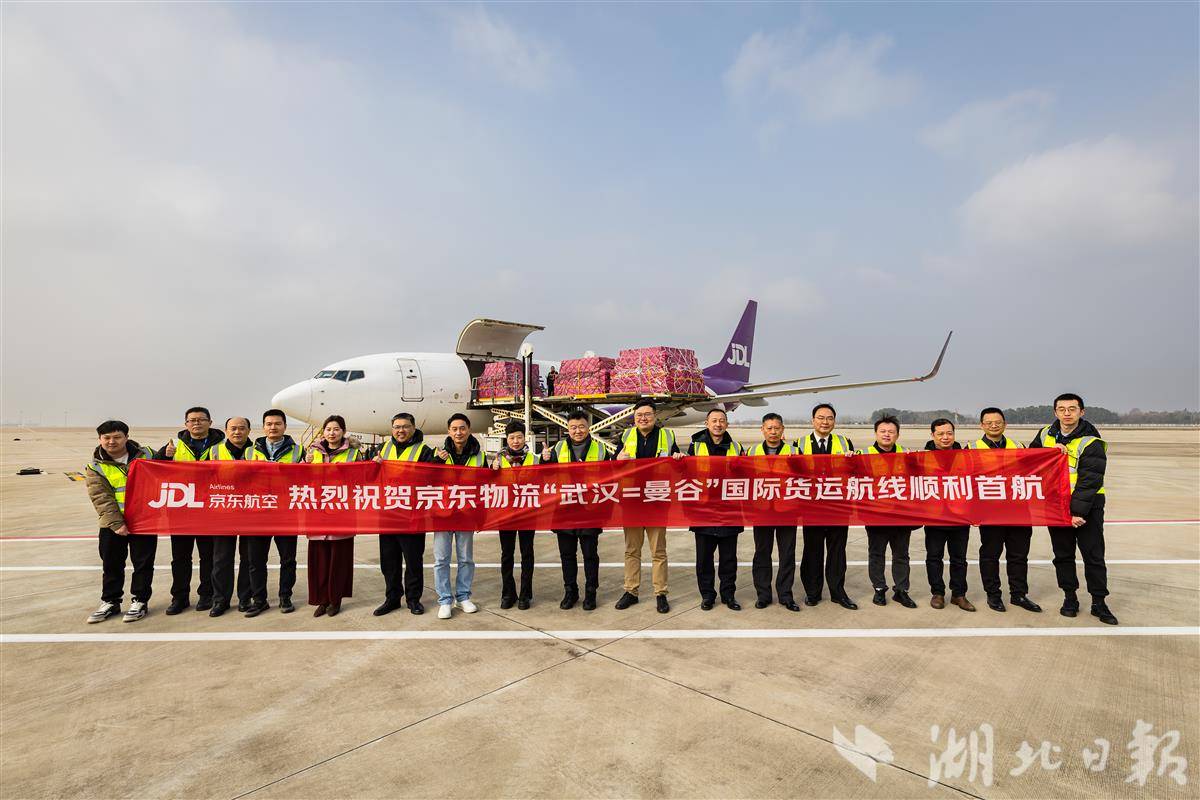 湖北日报讯(记者李源、通讯员涂宇轩、刘炳霖、叶帅)1月27日11时12分,一架满载跨境电商包裹和光电子信息产品的京东物流全货机从武汉天河国际机场起飞,前往泰国曼谷素万那普国际机场。这是2022年以来,天河机场新开通的首条定班货运航线,不仅进一步便利华中地区与泰国的经贸往来,也为湖北航空客货“双枢纽”打开协同发展新局面。