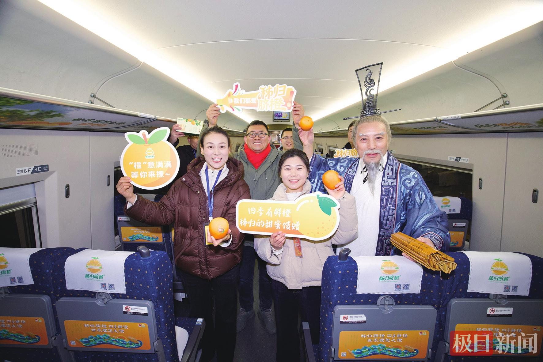 “秭归脐橙甜中带酸,水分特别足。今天带孩子体验这趟列车,还能尝到现场赠送的橙子,很有意义。”前往北京的旅客乐女士笑着说。