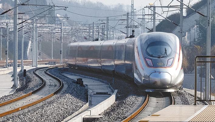 2025年12月26日,G6800次首发列车驶离宜昌北站,标志着沪渝蓉沿江高速铁路武汉至宜昌段正式开通运营。 (湖北日报全媒记者 刘曙松 摄)