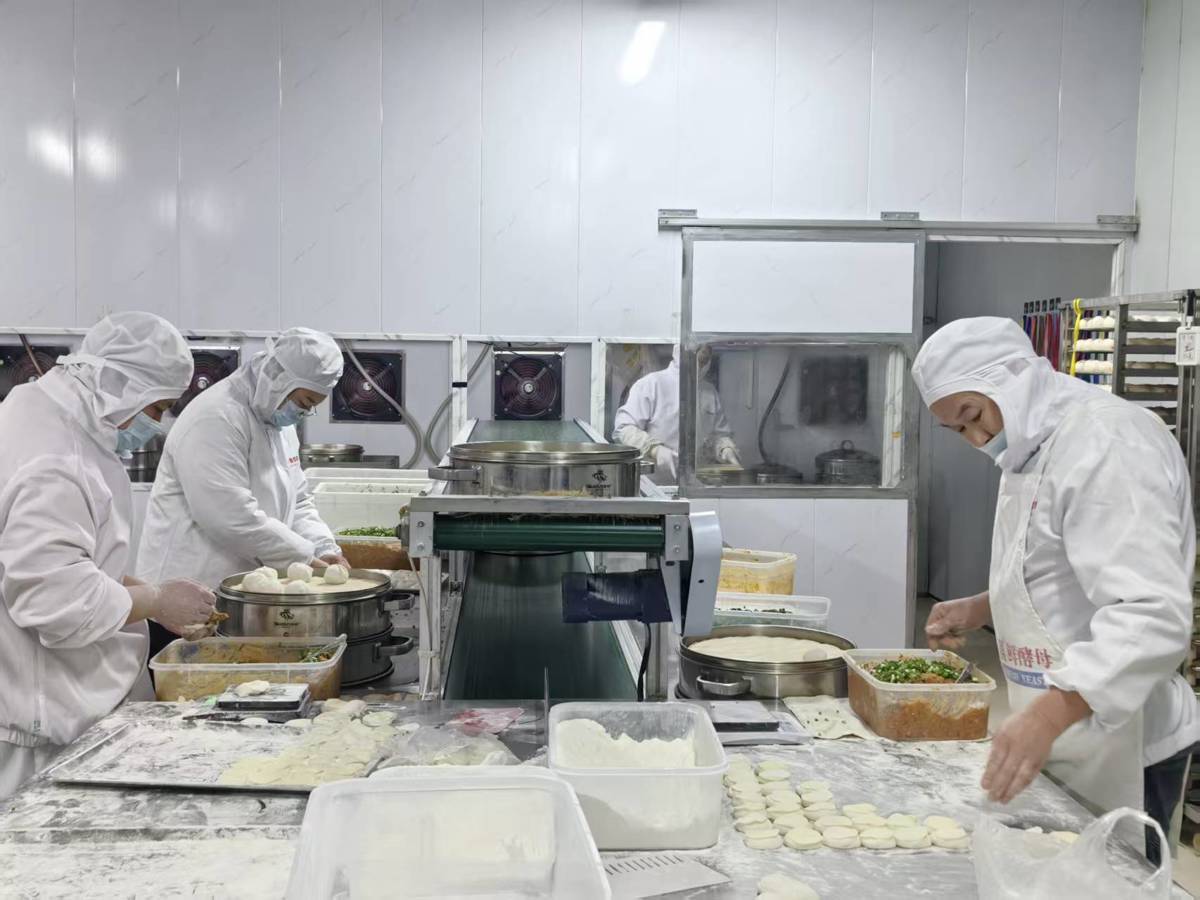 1月27日,宜昌市夷陵区龙泉镇的宜昌秉兴食品有限公司生产车间内一片繁忙。十余名工人正在操作台前熟练地忙碌着——和面、分剂、包馅、成型,动作流畅有序。传送带上,一格格饱满的红油包子缓缓向前送达至加热区,空气中弥漫着老面发酵的香味。