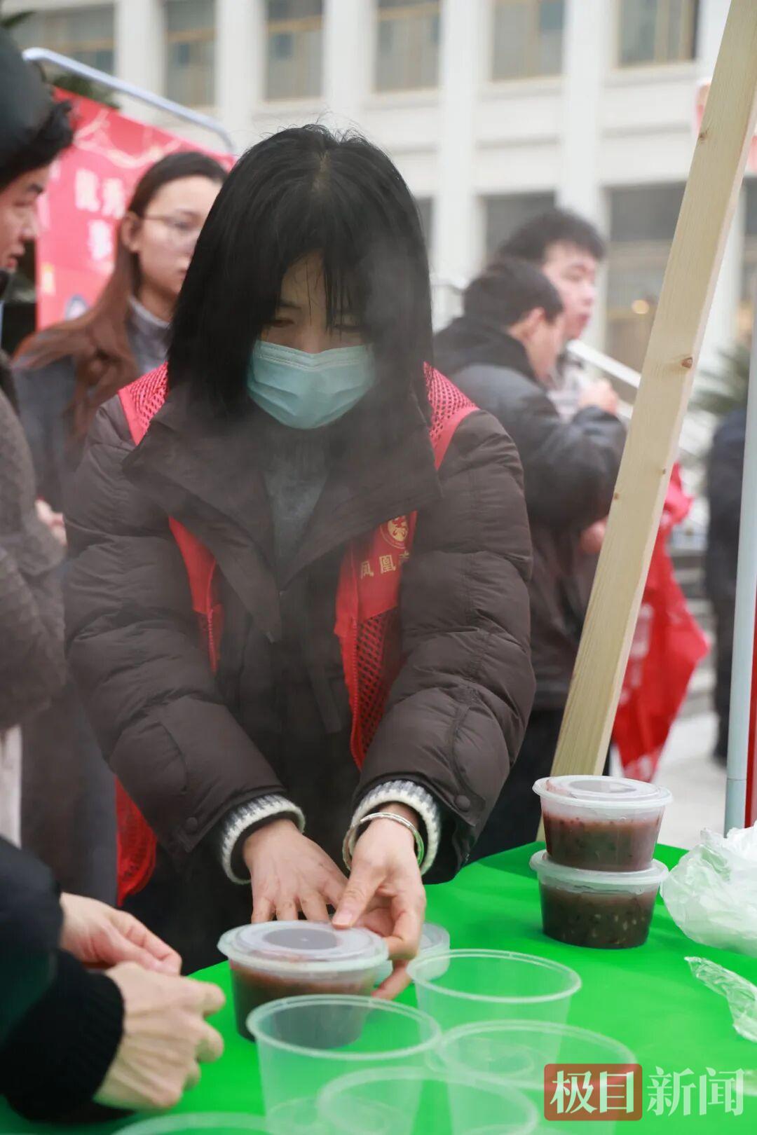 广场一侧,“人才暖新城”的志愿摊位前排起了有序的小队。人才服务联盟、志愿者与社区工作人员正将一碗碗热气腾腾、精心熬制的腊八粥,递到环卫工人、快递小哥和过往居民手中。