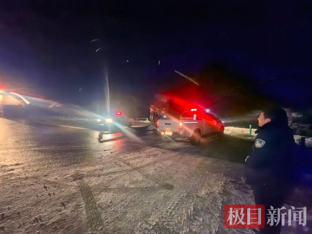 当晚,寒风裹挟着雨雪侵袭辖区,刑侦大队重案中队中队长周俊带领四名队员,毅然坚守在洞口张至黄金岭路段值守点。该路段地势崎岖复杂,弯道、坡道相连,雨雪天气的持续影响让路面迅速变得湿滑结冰,车辆通行风险大幅攀升,成为冬季道路安全的“薄弱环节”。22时许,一阵刺耳的刹车声打破了夜的宁静,一辆大货车行驶至该路段下坡转弯处时,因路面湿滑结冰失去控制,车身剧烈打滑后径直冲撞向道路护栏,车辆受损严重,驾驶室变形,货车司机被困其中,生命安全受到威胁,情况十分危急。