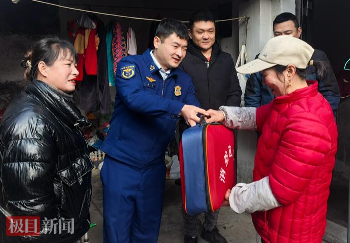 1月28日,湖北省监利市消防救援大队在毛市镇开展“消防进家平安过冬”行动,免费向居民发放消防“四件套”(感烟报警器、灭火毯、灭火器、逃生面罩)。