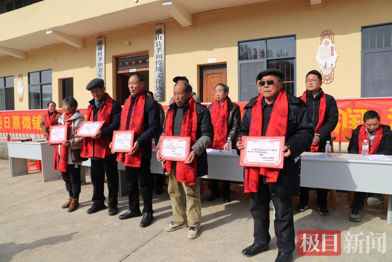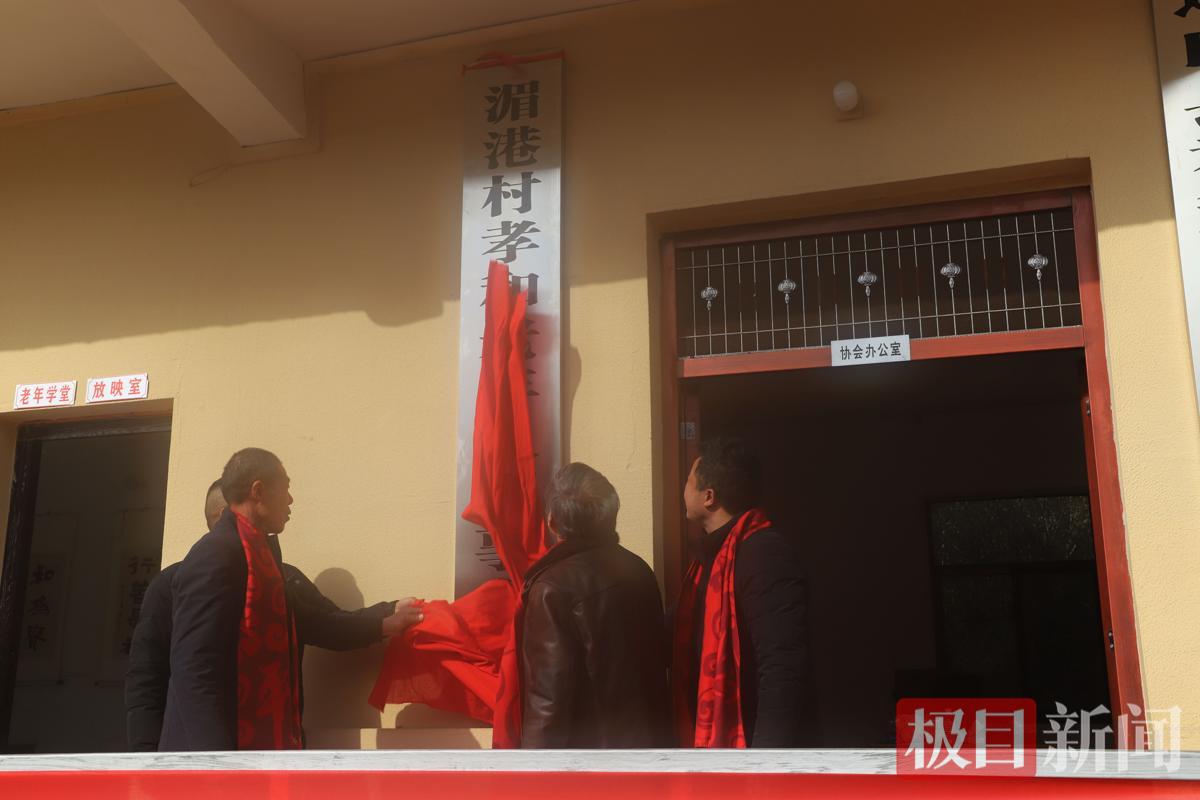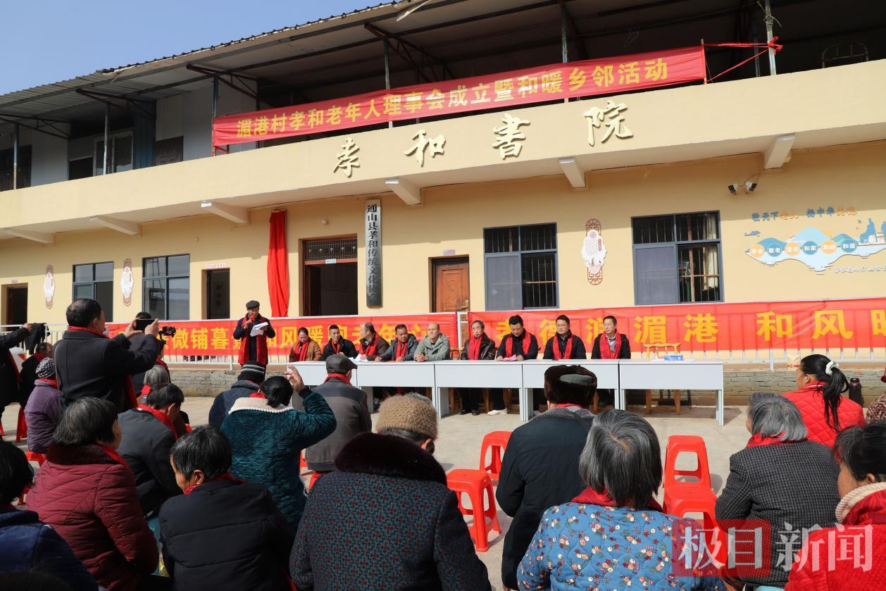 1月28日,通山县通羊镇湄港村姜家湾孝和传统文化协会办公楼孝和书院前一派节日气氛,该村成立老年人理事会揭牌仪式如期举行。