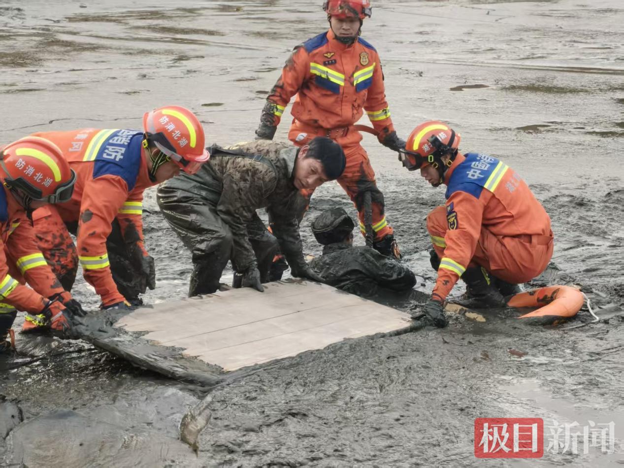 “大爷别慌,我们来了!”消防救援人员一边轻声安抚老人,一边迅速制定救援方案。泥潭地质松软,贸然靠近极易陷入泥潭,消防救援人员当即从附近农户家借来宽木板、铁锹等工具,将木板平铺在淤泥上搭建临时受力面,缓慢向老人靠近。