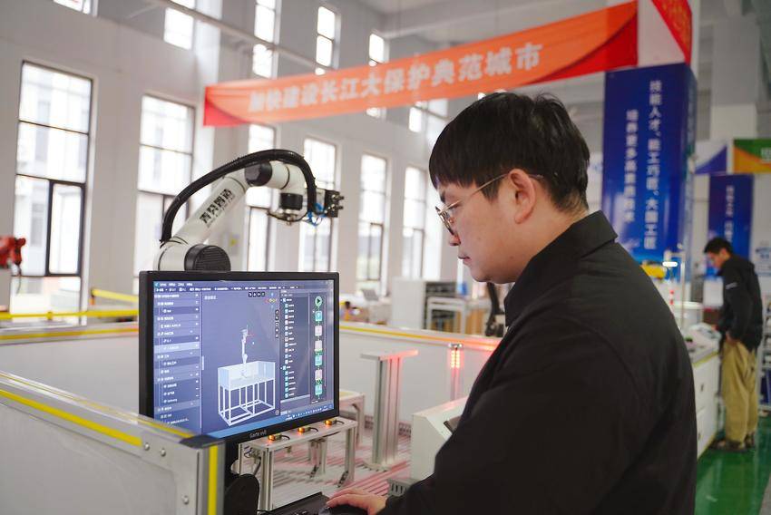 三峡传神社区办公室,工程师在编程操作。(湖北日报全媒记者 夏晓君 摄)