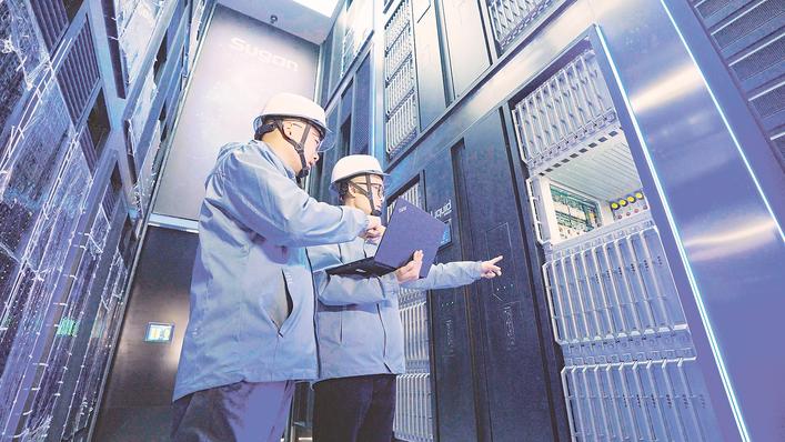 技术人员在国家先进计算产业创新(宜昌)中心机房巡检。 (点军区融媒体中心供图)