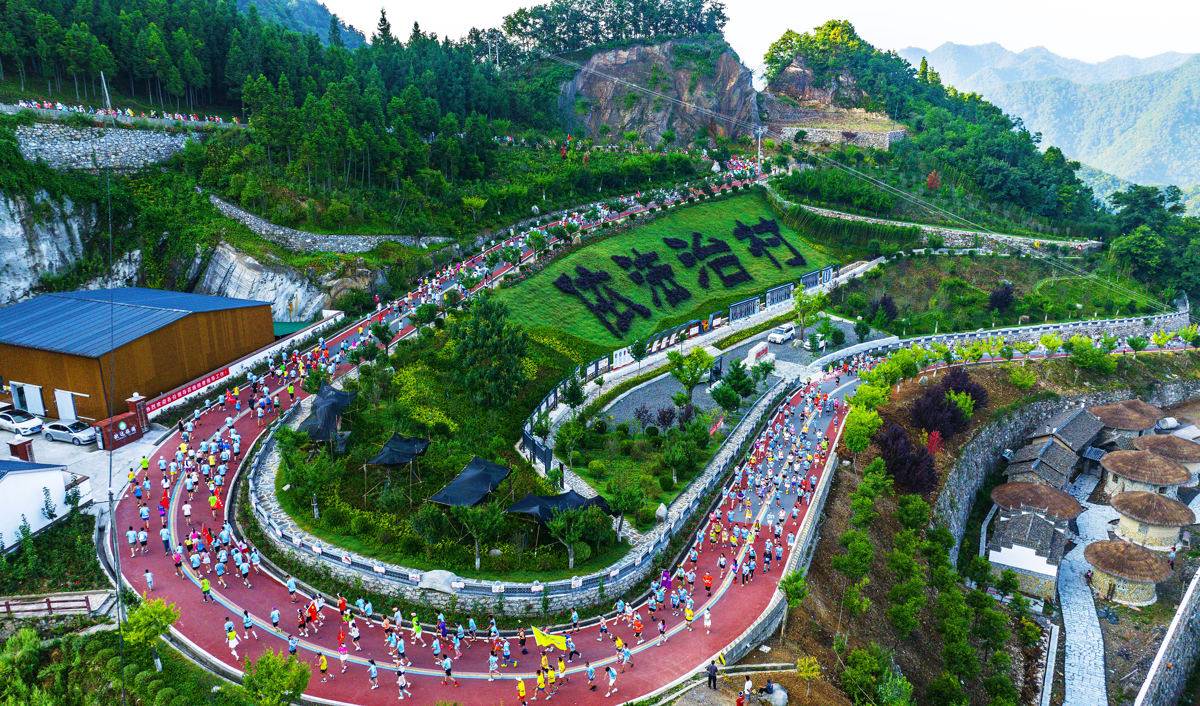 马拉松参赛选手在尧治河村美丽的道路上奔跑。(湖北日报通讯员 杨韬 摄)