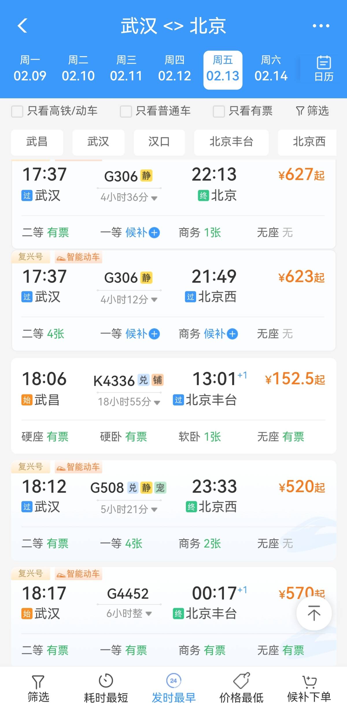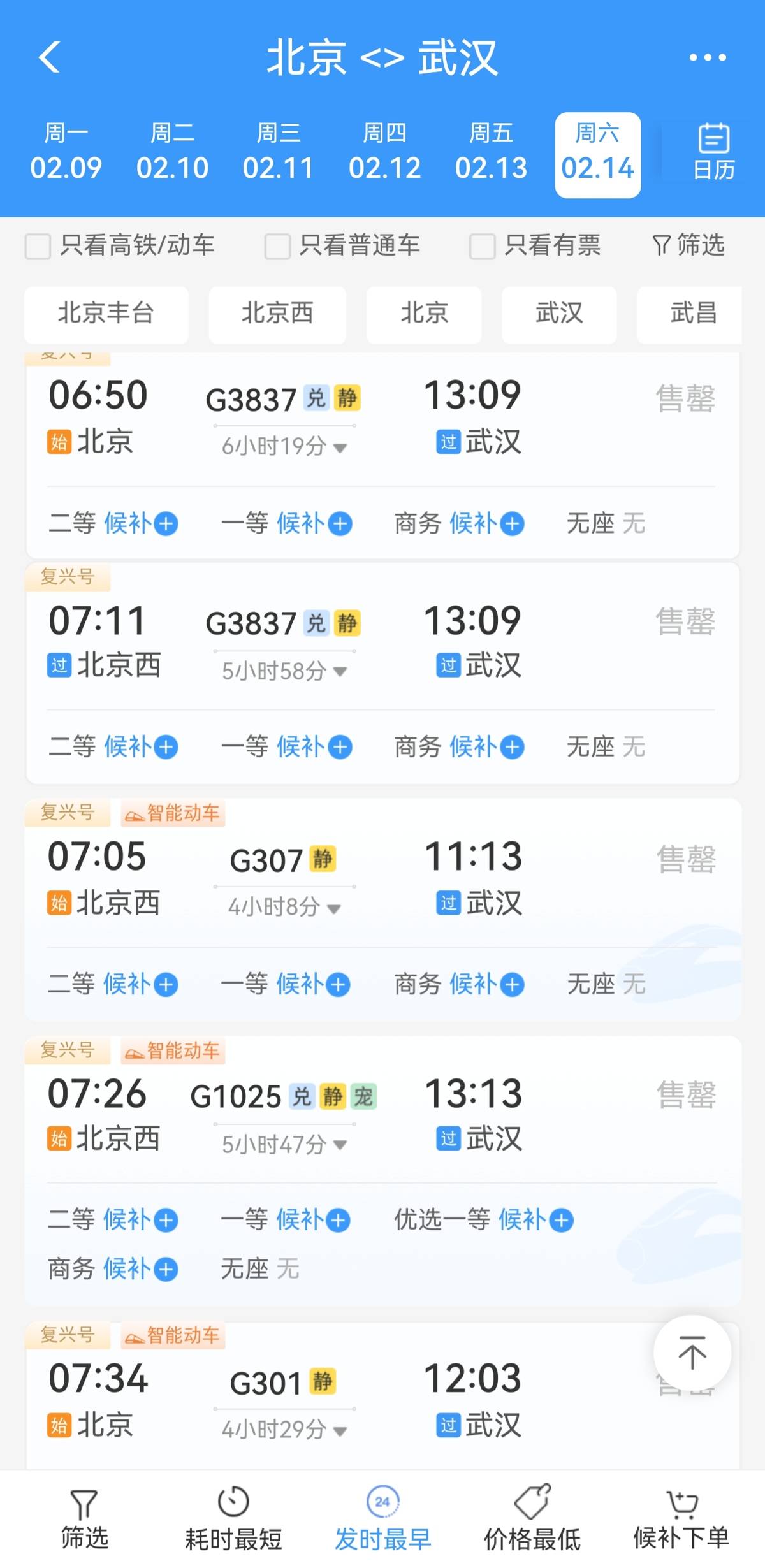 目前,武汉前往北京、上海、广州等地的余票较为富足,而北京、上海、广州等地前往武汉的车票则十分紧俏,许多车票开售即秒光。