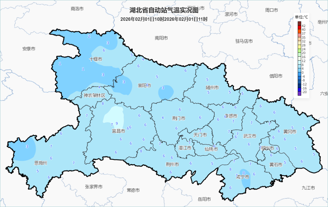 预报来源:湖北省气象台2026年2月1日08时预报