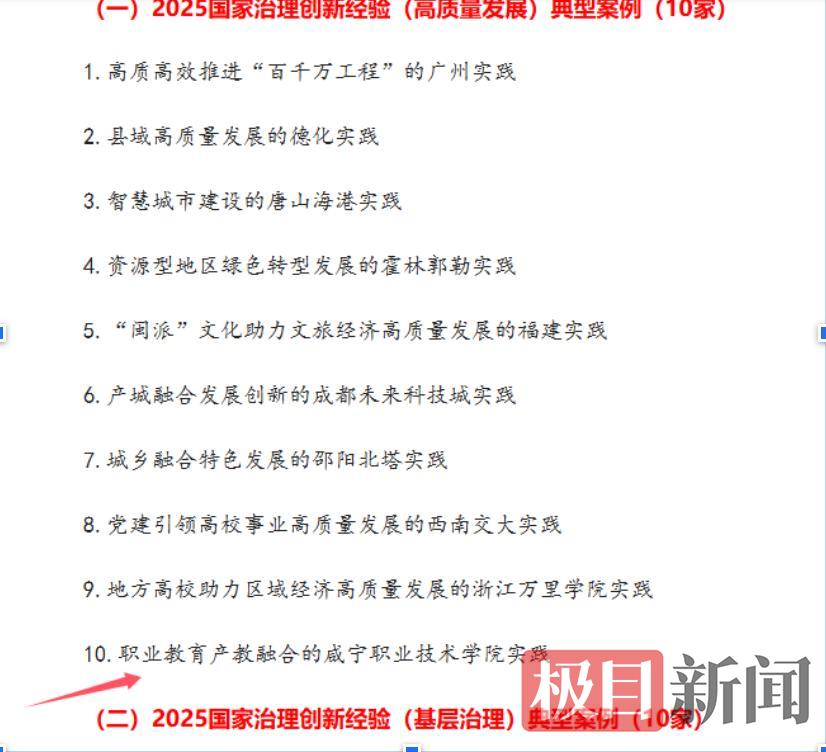 据悉,2025年度课题调研通过网络征集、专家推荐等多渠道,共收到各类实践案例材料1630余件。课题组严格依据创新性、科学性、有效性、普适性、影响力五项核心指标,经层层筛选、实地调研及专家综合评审,最终从海量案例中推选出30家典型案例,分属“高质量发展”“基层治理”“企业治理”三大主题,每主题各10家,咸宁职院凭借在职业教育产教融合领域的突破性实践成功入选,彰显了其经验的代表性与推广价值。