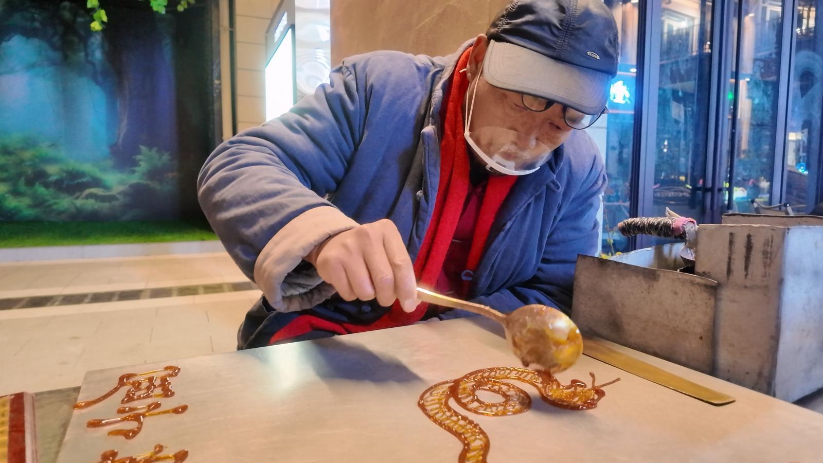 糖画摊前,琥珀色的糖浆流转间,飞龙雏凤顷刻成型,在孩童的手中晶莹闪耀,甜蜜的技艺就此烙印于一代人的童年记忆。