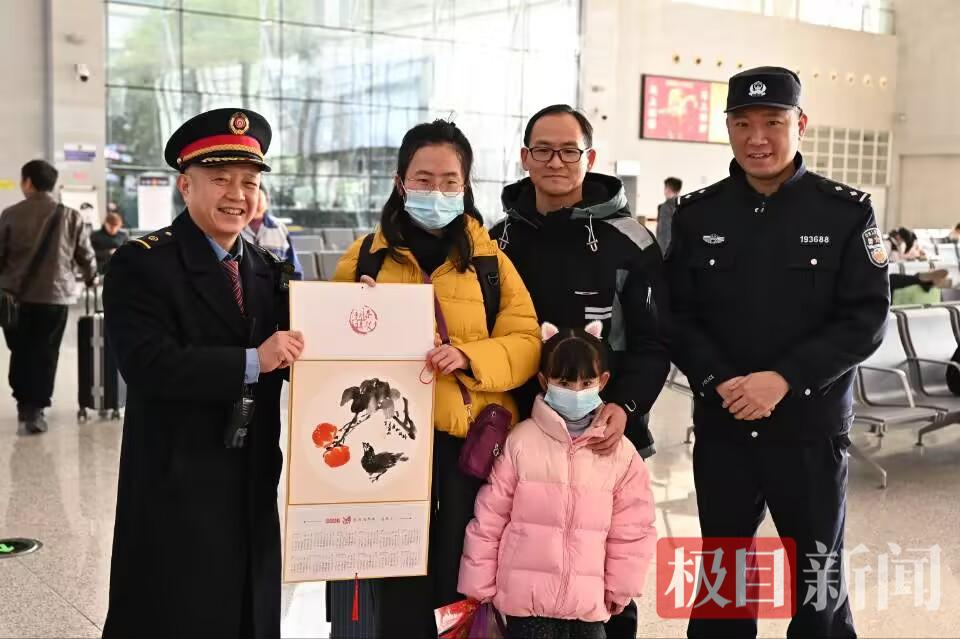 当画家将画作赠予王澳妮母女时,两人拿着画作看了又看,开心激动到满脸通红:“今天不期而遇的新年礼物很应景很特别,真的好开心!”原来,王澳妮的母亲也是一名书画爱好者,一直坚持学书画,去年刚刚退休。今天一大家人从大冶出发,到河南旅游,没想到在咸宁北站收获了新年出行的惊喜,“这是我母亲退休后收到的一份珍贵礼物,咸宁是一座温暖的城市,我们一定好好珍藏画作!”