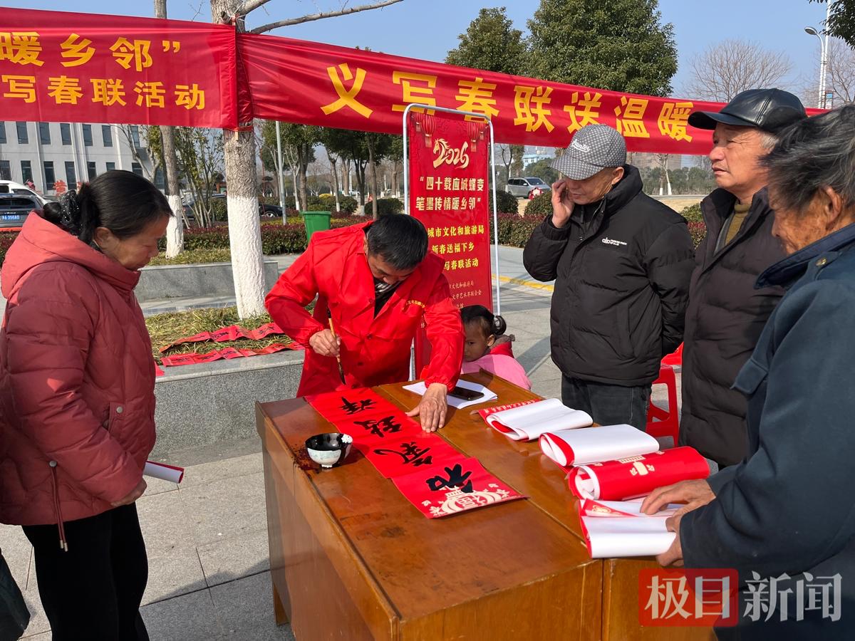 活动现场,红纸铺展,墨香流淌。来自市文联的书法家与本镇文艺爱好者们一同挥毫,书写出一副副寓意吉祥的马年春联。“骏马迎春春色好,吉祥入户户生辉”,笔墨之间不仅传递着年味,更承载着对乡亲们的美好祝愿。