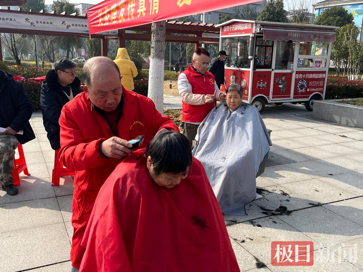 便民服务组团而来,暖心又实在。义诊义剪区人气十足:镇卫生院的体检车旁,医护人员耐心提供健康咨询与基础检查;两家镇区理发店的志愿者巧手翻飞,为老人、孩童义务理发。一旁,镇人社服务中心设立的“春风行动”宣传台前也围拢了不少群众,工作人员正热情讲解“家门口”的就业政策与岗位信息。