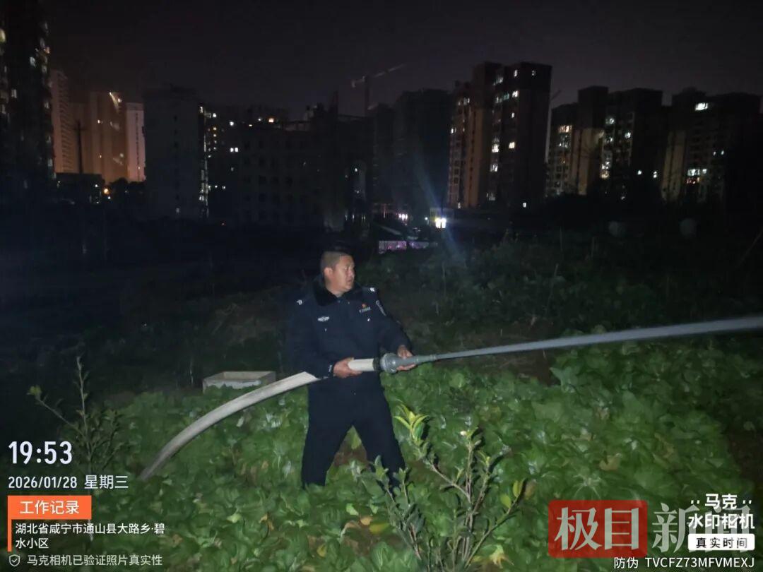 “不好,着火啦!”1月28日19时许,通山县公安局大路派出所迎宾社区警务室民辅警在辖区开展巡逻勤务,行至某小区附近时,敏锐发现小区旁的山坡上冒出浓烟,且伴有明火,火势正逐步扩大。更为危急的是,起火点临近山林和小区,一旦火势失控,极易引发事故。
