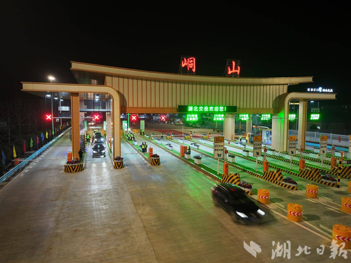 2月3日零时,第一辆车通过峒山收费站。(通讯员王可摄)