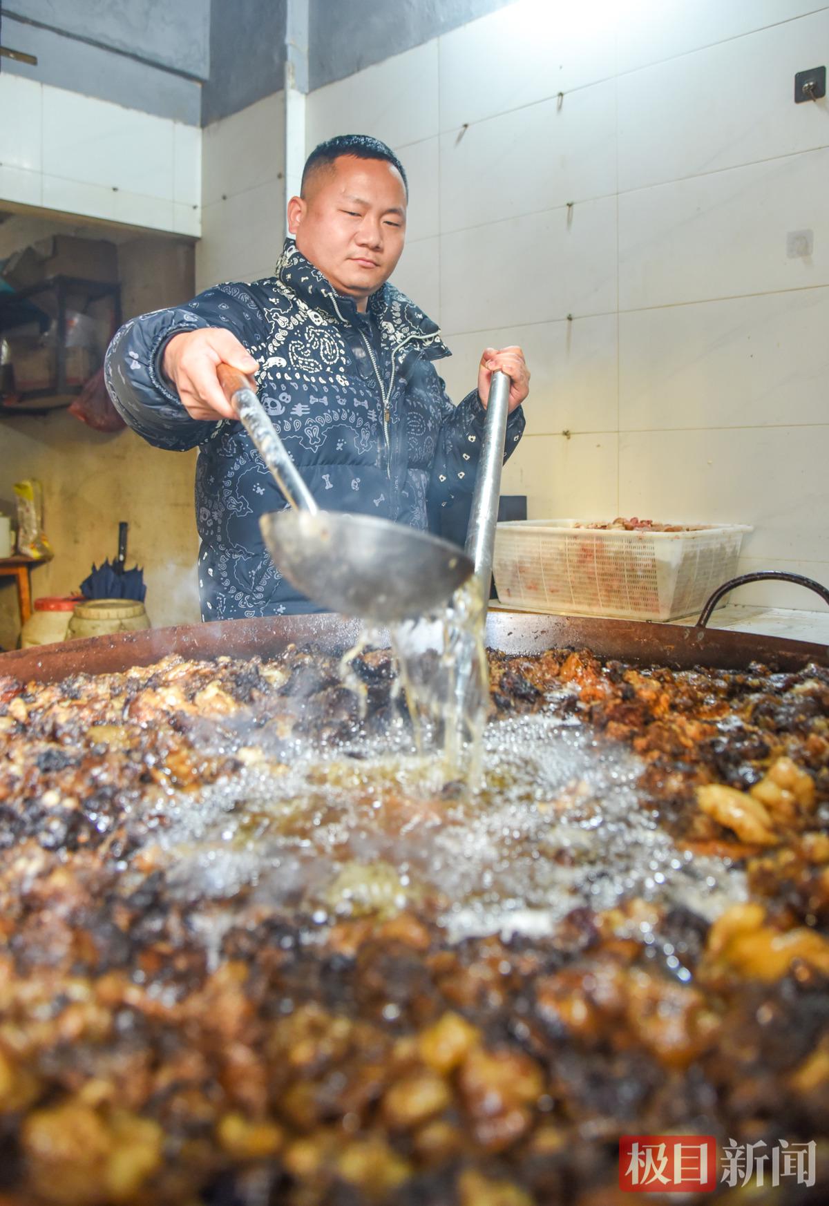 刘杨在公安县城一家连锁店熬制牛油。(新闻记者 黄志刚 摄)