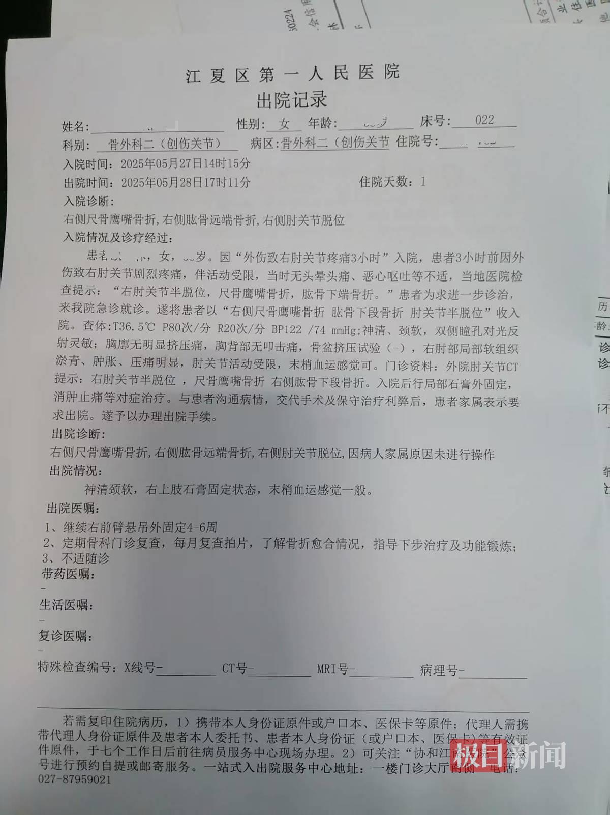 然而,1月14日,陶女士询问园长事情办理进度,但未获回应。不久,欧阳女士再次询问时,园方提出新要求:让一年后取完钢板、做第二次伤残鉴定,再谈赔偿。这一要求让家属无法接受。“法律规定工伤6个月后就能做伤残鉴定,现在结果已经出来了。”陶女士说,母亲年近六旬,术后手臂活动仍受限制,后续取钢板还需手术,一家人只想尽快了结此事。