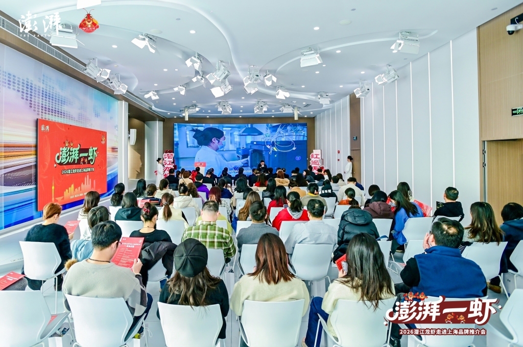 2月2日,由潜江市人民政府、澎湃新闻(www.thepaper.cn)共同主办的“澎湃一‘虾’”2026潜江龙虾走进上海品牌推介会在上海报业集团澎湃新闻举行。来自沪潜两地的相关政府部门代表、企业客商、媒体记者、网络达人及市民观众等齐聚一堂,品尝潜江冬虾,感受“潜江龙虾”的滋味。
