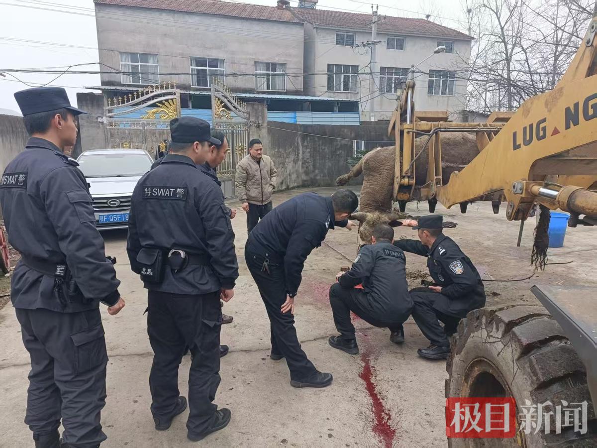 2月1日中午11时许,一阵急促的求助电话,打破了湖北襄阳市公安局襄城分局卧龙派出所值班室的宁静,辖区袁巷村一村民焦急的声音从听筒传来:“警察同志快帮忙!我家的牛突然发疯了,横冲直撞根本拦不住,太危险了!”