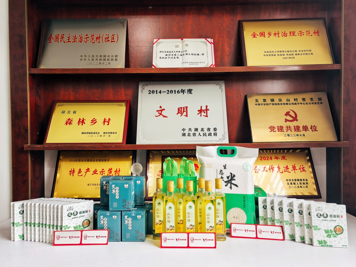 尖山村地处幕阜山区腹地,深入践行“绿水青山就是金山银山”理念,依托得天独厚的自然环境,孕育出天然、无污染的绿色优质农副产品,尤以高品质艾草资源著称。近年来,尖山村“两委”立足本地实际,因地制宜发挥本土特色产业优势,确立了“一药(蕲艾)一酒(龙窖山酒)”村级特色产业发展路径,有效带动了村集体经济增收与村民致富。