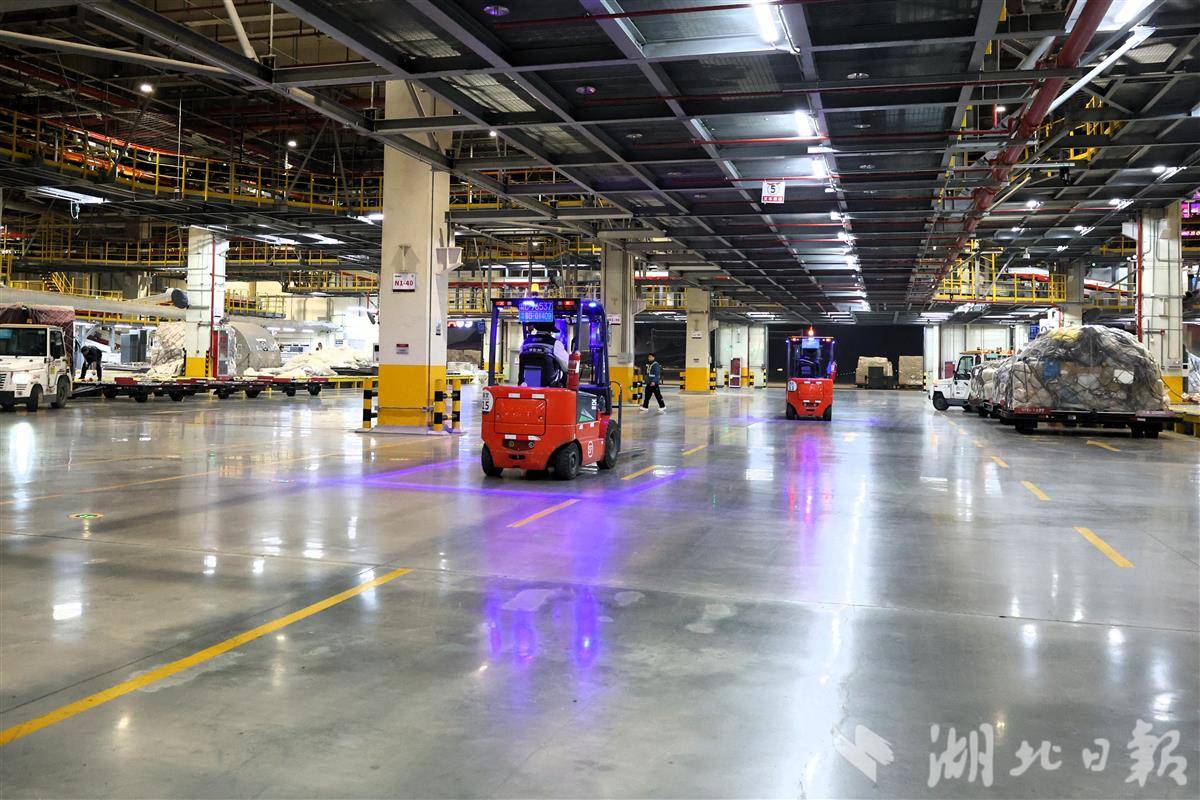 货运“春运”模式开启花湖机场昼夜繁忙。湖北日报全媒记者周鹏、通讯员王星予、周奕彤摄