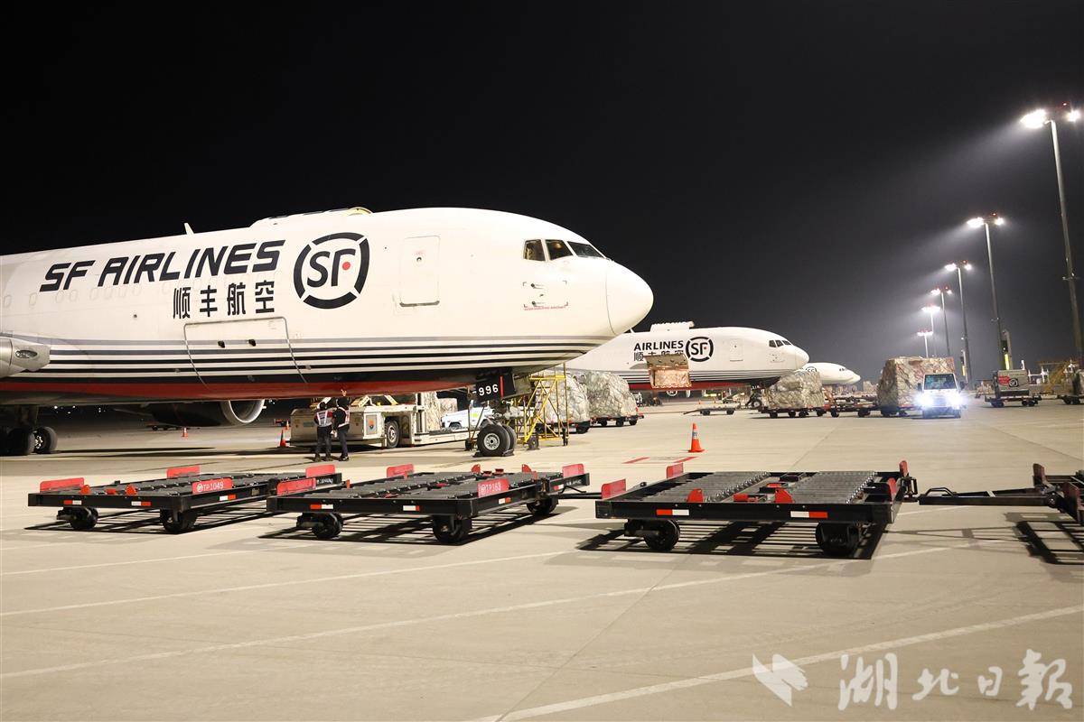 货运“春运”模式开启 花湖机场昼夜繁忙。湖北日报全媒记者周鹏、通讯员摄