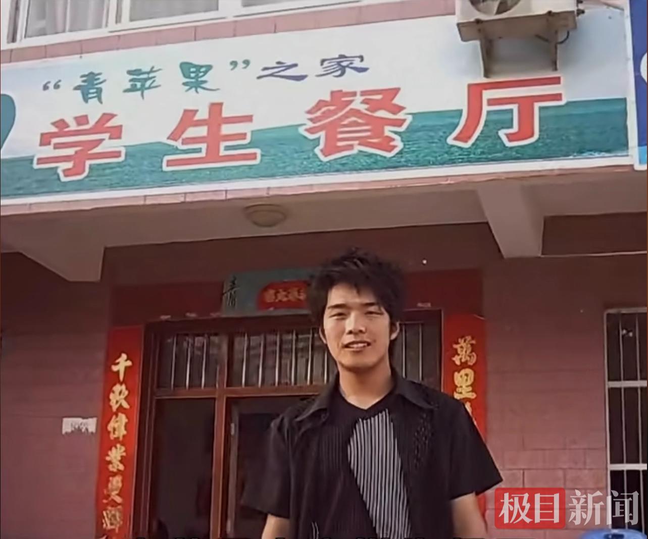 学生时代的钱城官在他餐厅门口